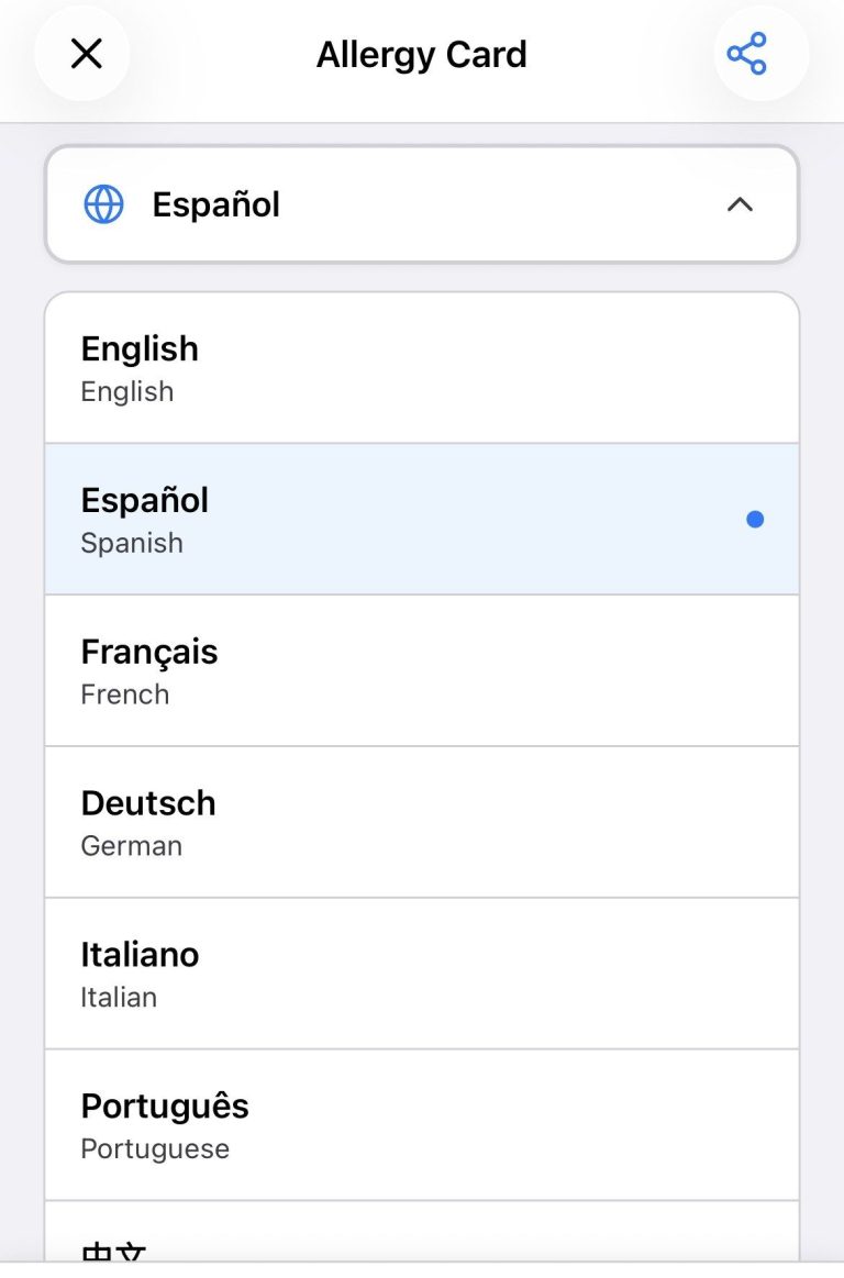 Use the fantastic allergy card and change the language to the destination your travelling to.
