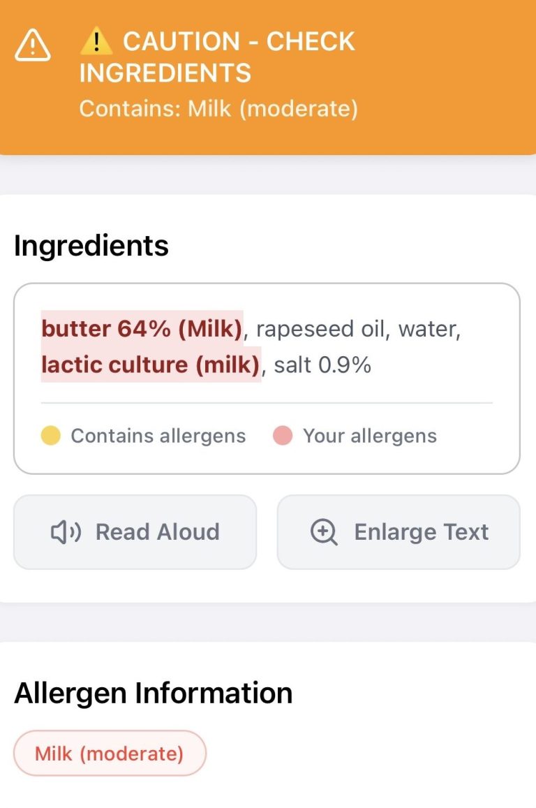Quickly identify allergens in foods with our easy-to-use scan feature!